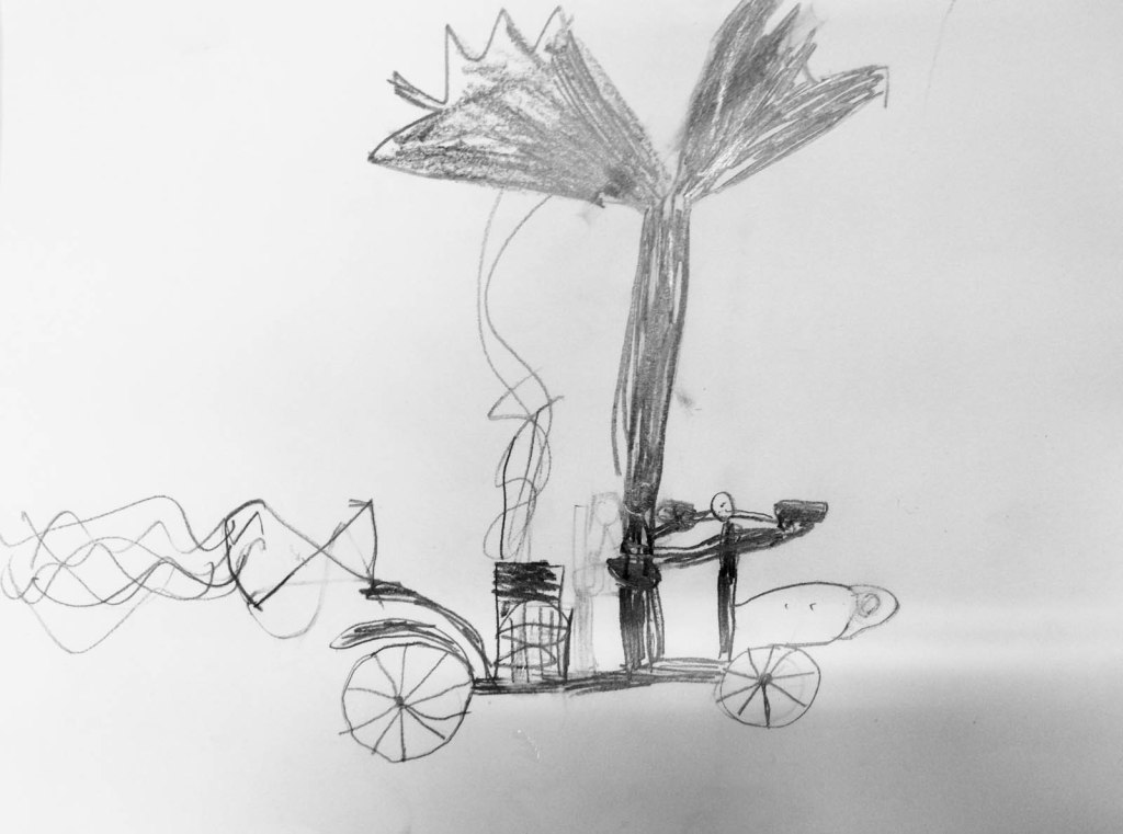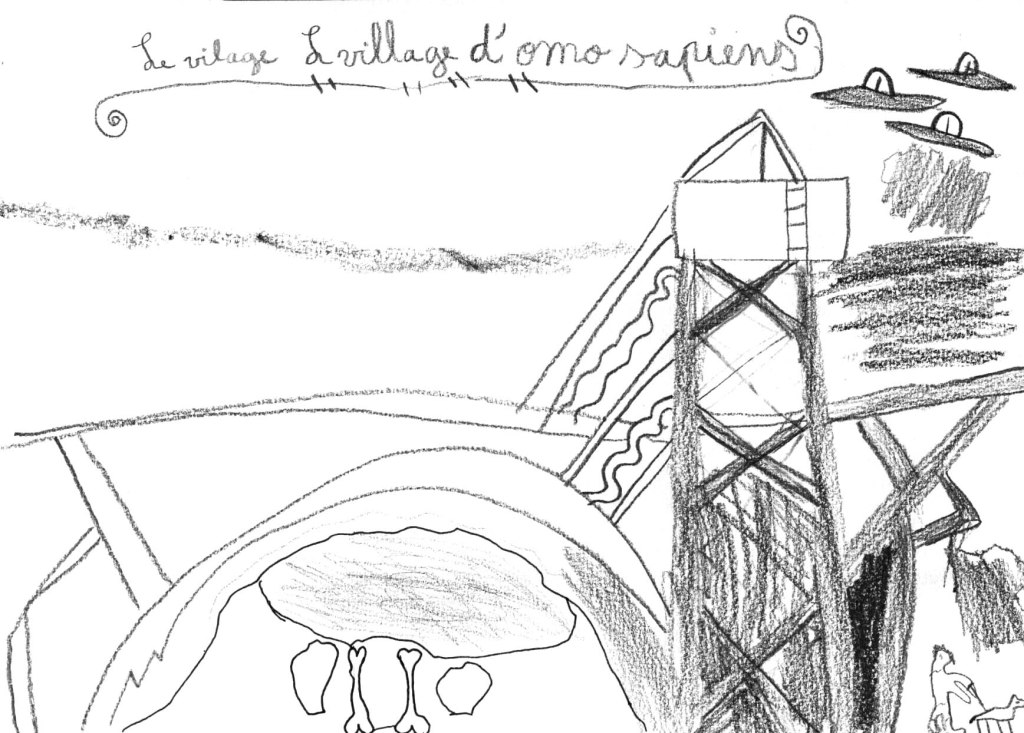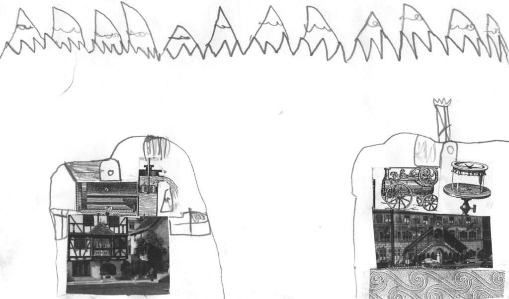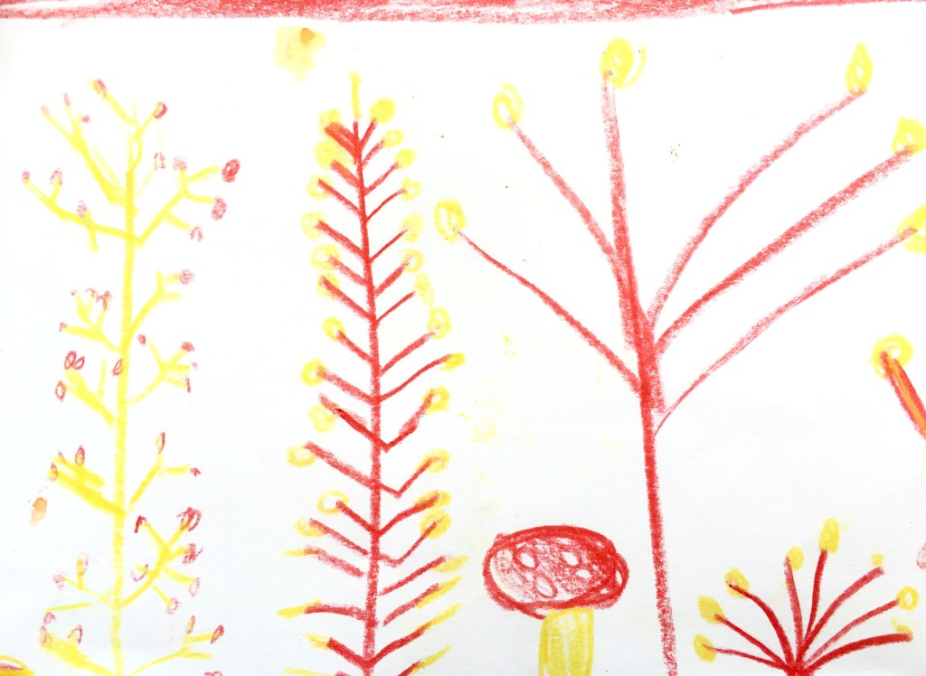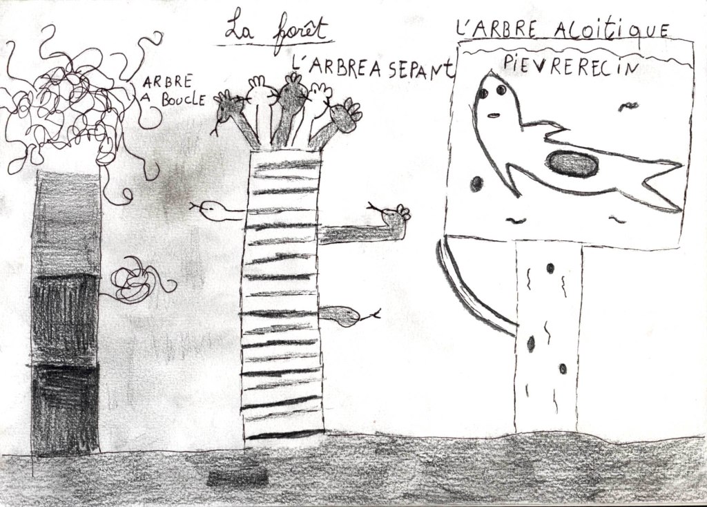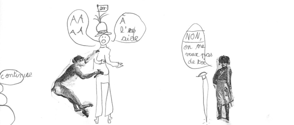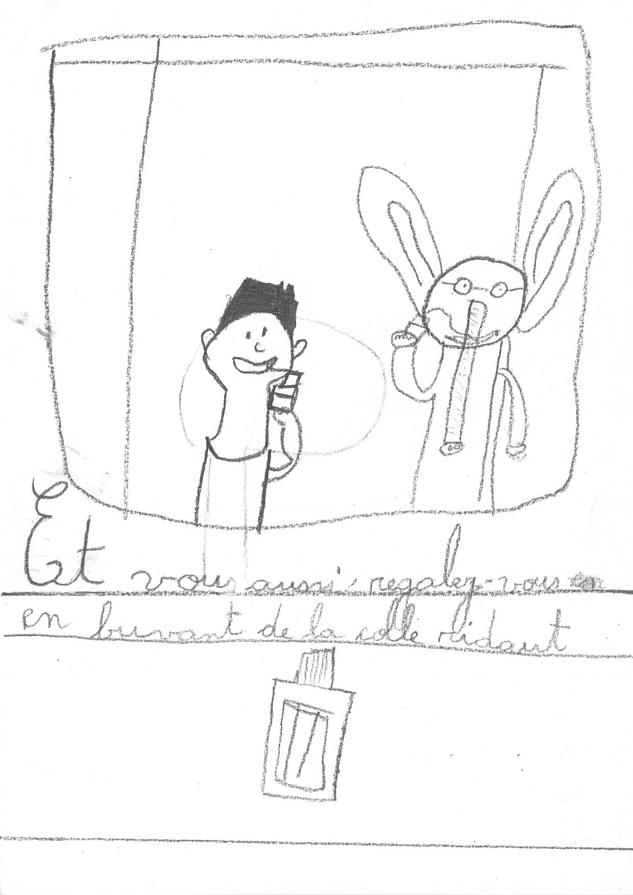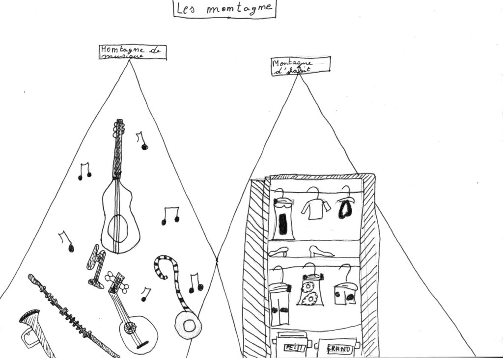 Avec des tracettes de fortune*, j’ai demandé aux enfants, à l’arrière de la deuxième feuille, de tracer des formes, ou des bouts de formes, en les superposant.