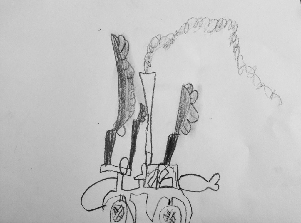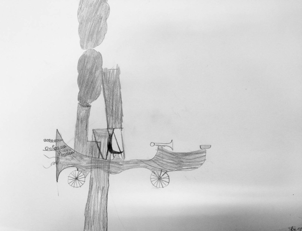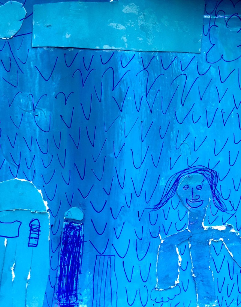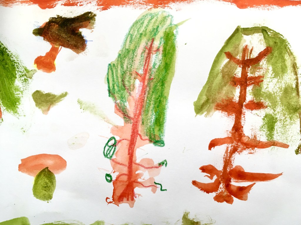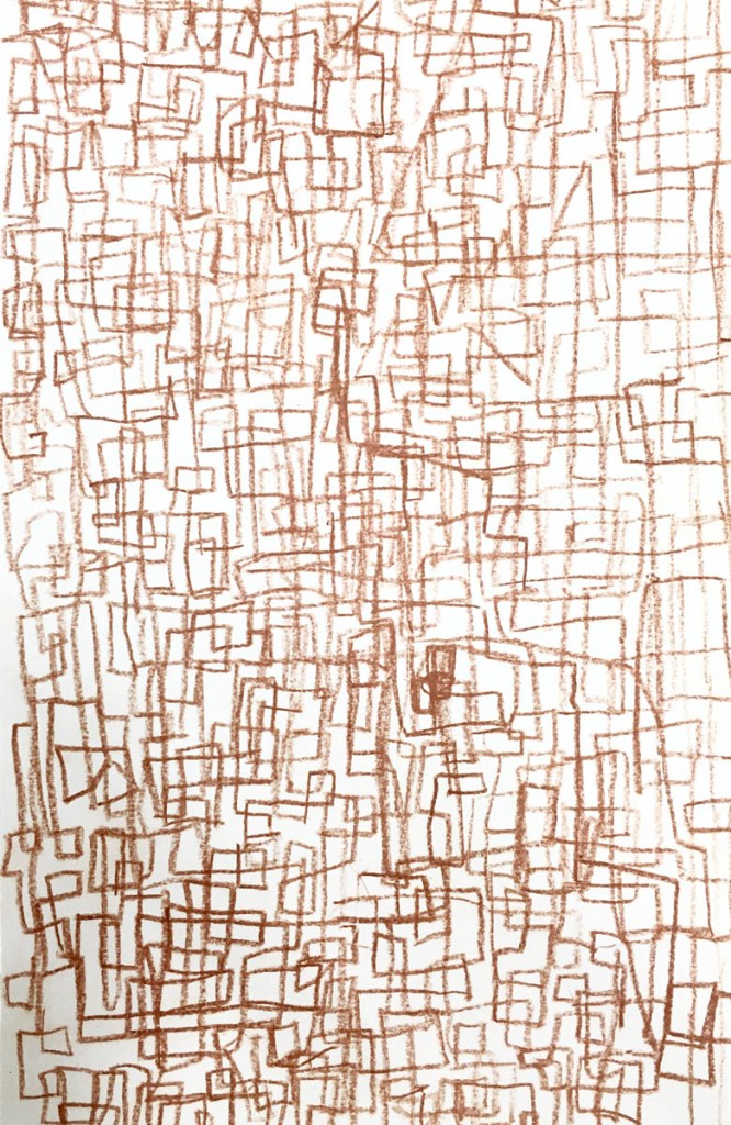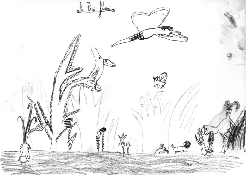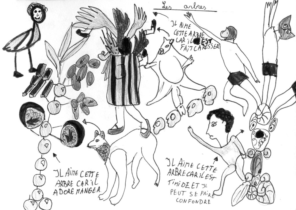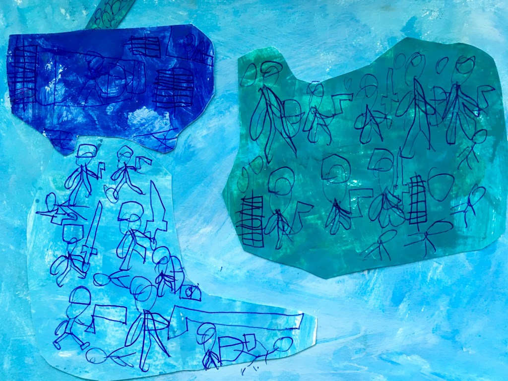 Avec des tracettes de fortune*, j’ai demandé aux enfants, à l’arrière de la deuxième feuille, de tracer des formes, ou des bouts de formes, en les superposant.