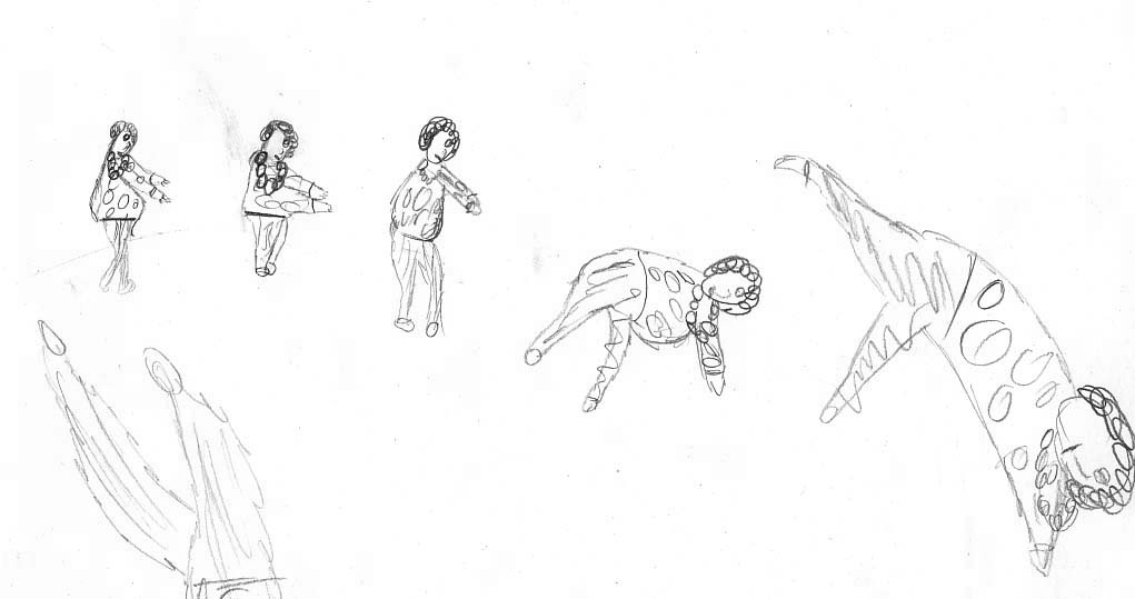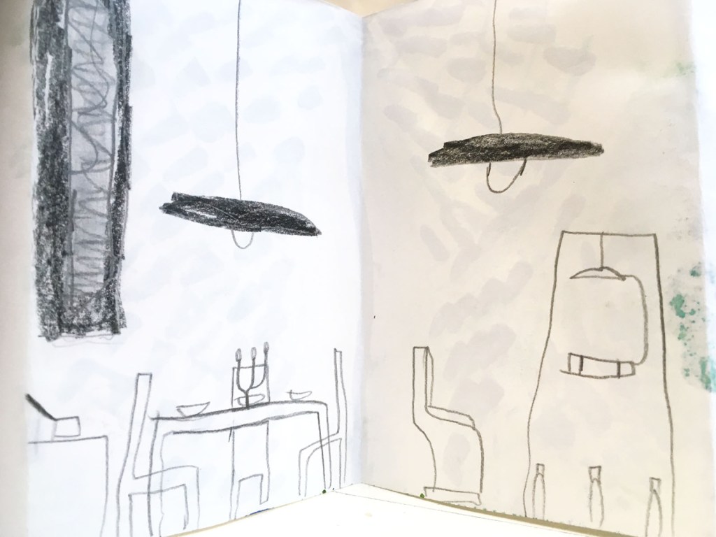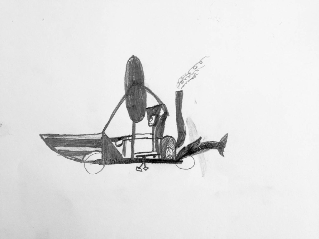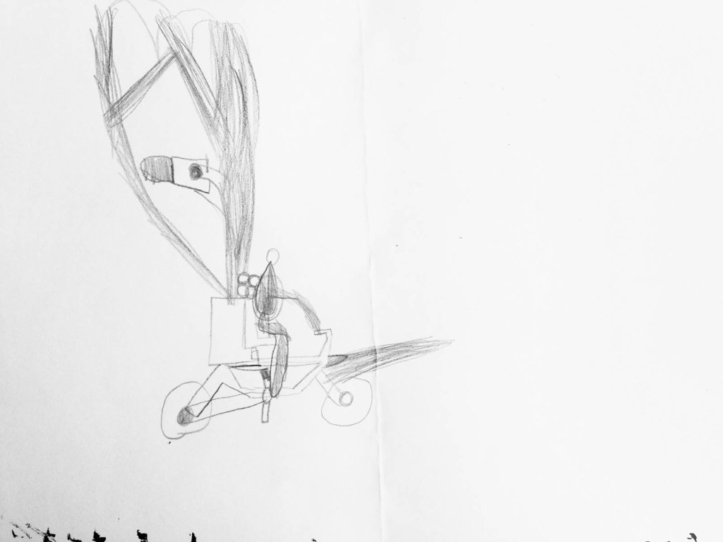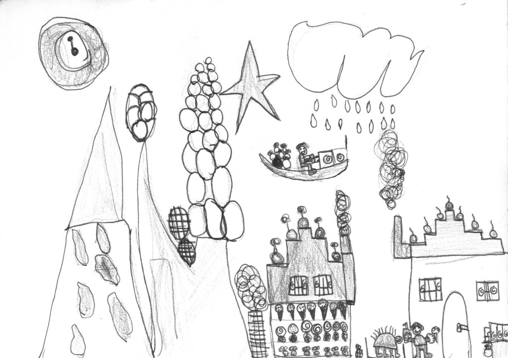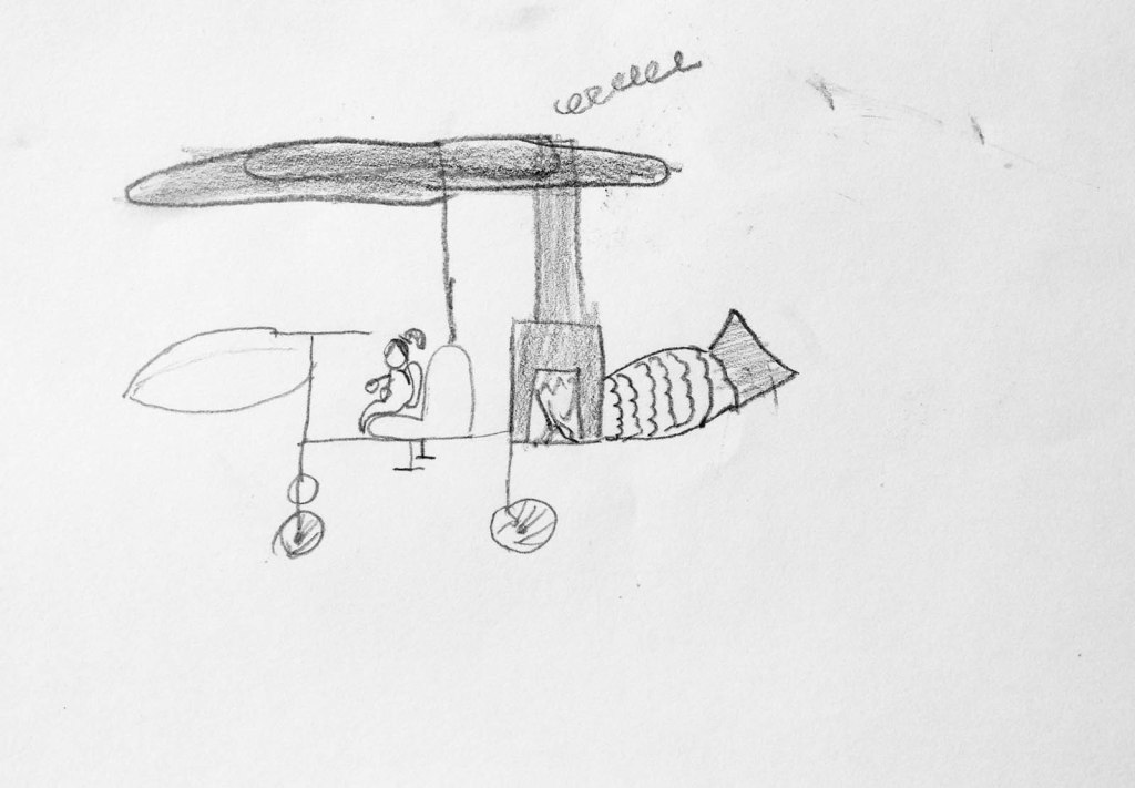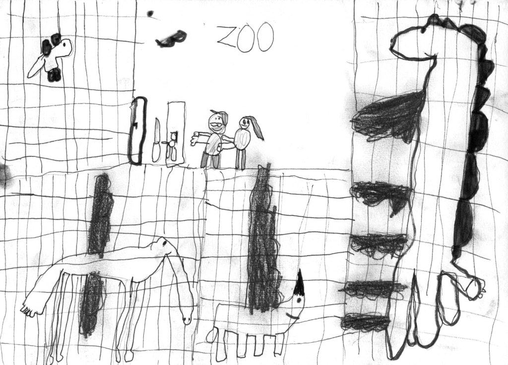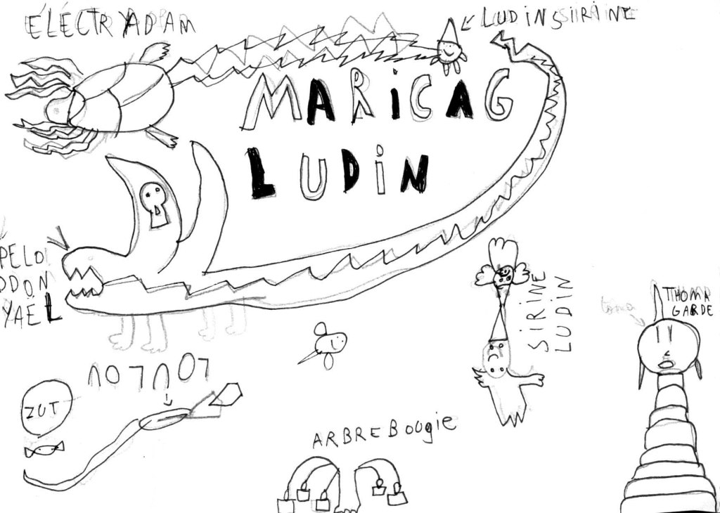 Avec des tracettes de fortune*, j’ai demandé aux enfants, à l’arrière de la deuxième feuille, de tracer des formes, ou des bouts de formes, en les superposant.