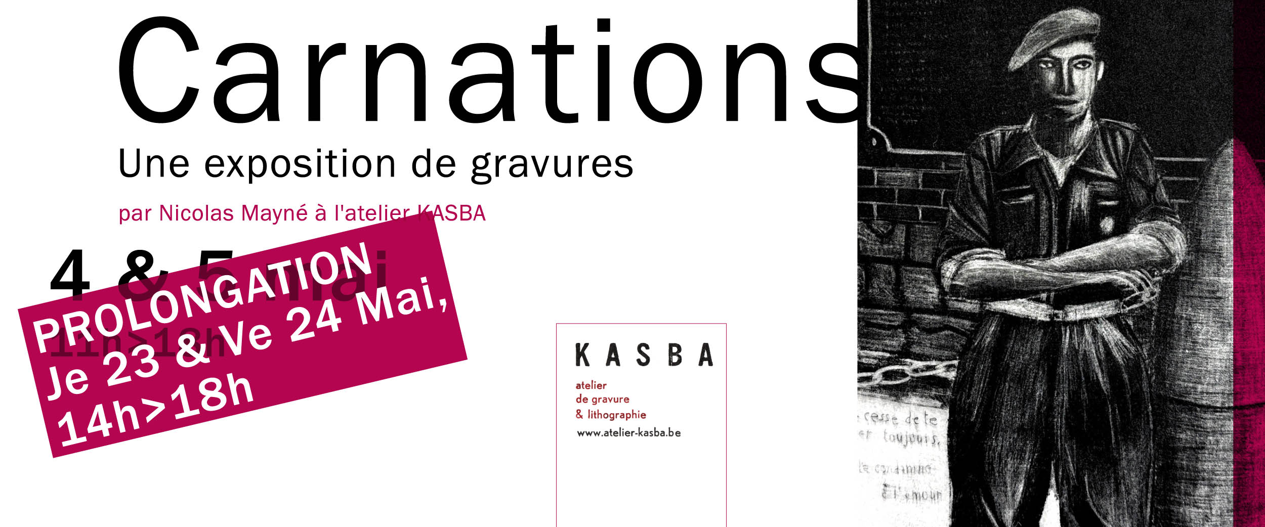 Carnations est une série de pointes-sèches, présentée au Centre de la Gravure et de l’Image Imprimée de La Louvière en décembre dernier, et proposée au regard du visiteur bruxellois encore les 23 et 24 mai.